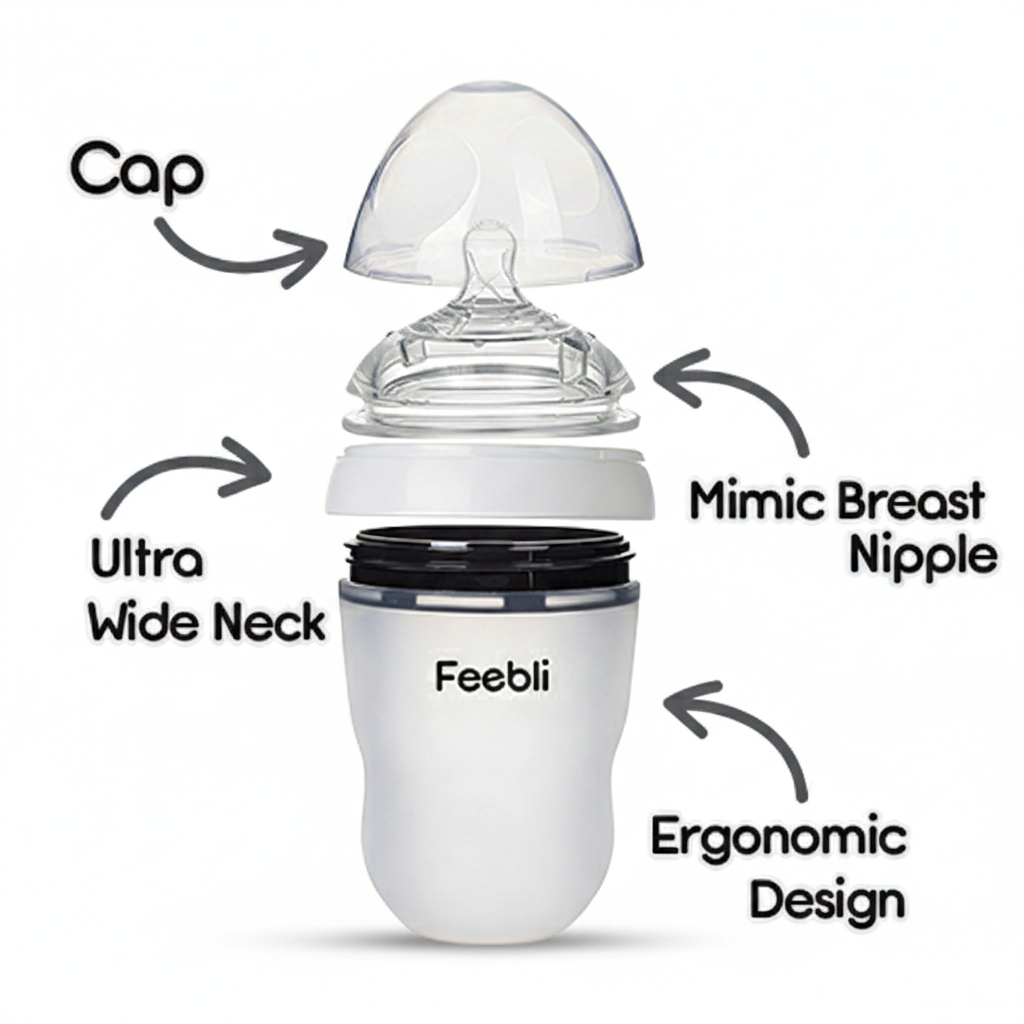 At Feebli, we believe that feeding time should feel calm, safe, and reassuring for both babies and parents. That’s why every product we create is thoughtfully designed using food-grade, BPA-free materials that are gentle on little mouths and safe for everyday use. We focus on comfort-driven details like soft silicone textures, leak-proof engineering, and anti-colic features that help reduce fuss and make feeding moments more peaceful.